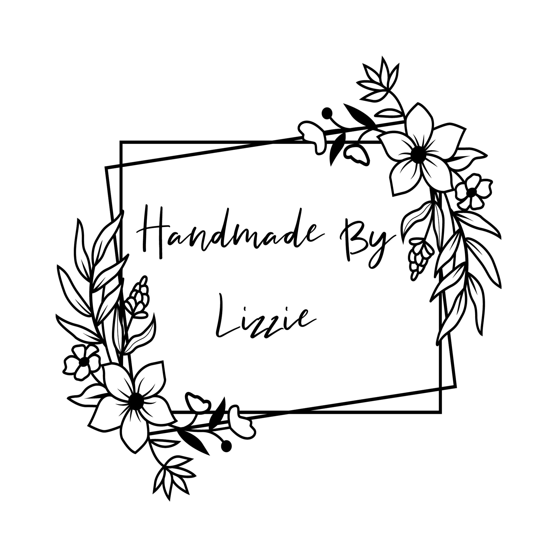 Personalised Laser Rubber Stamps - Handmade By: Flower Double Squares